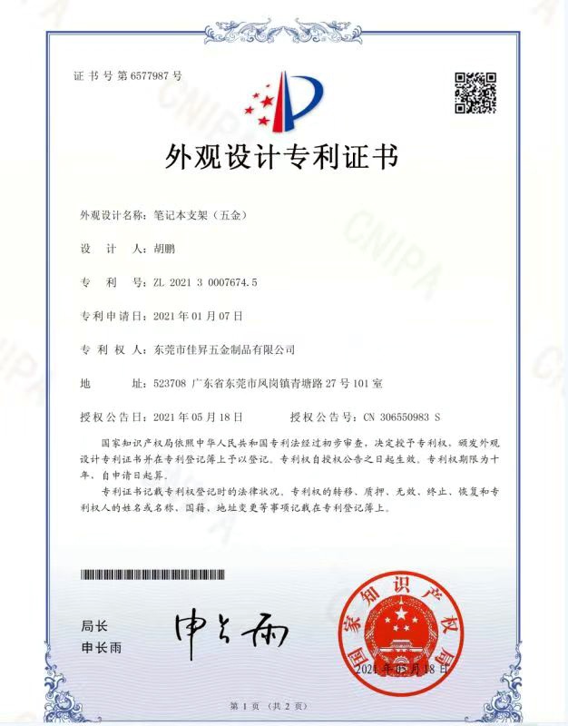 ◆ 專利權(quán): 擁有8項(xiàng)由國(guó)家知識(shí)產(chǎn)權(quán)局頒發(fā)的外觀設(shè)計(jì)專利證書